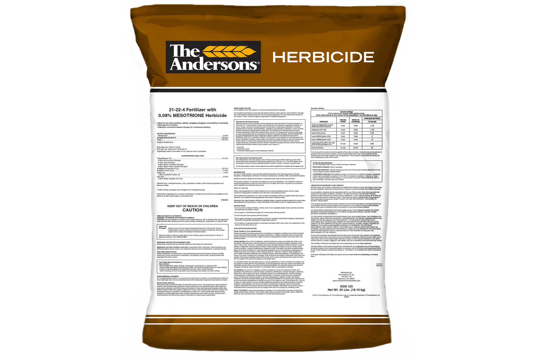 A traditional 50-pound bag of 22-0-4 fertilizer contains about 20 pounds (or 40%) of...