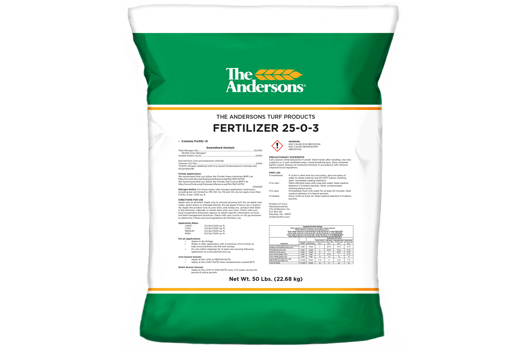 A traditional 50-pound bag of 22-0-4 fertilizer contains about 20 pounds (or 40%) of...