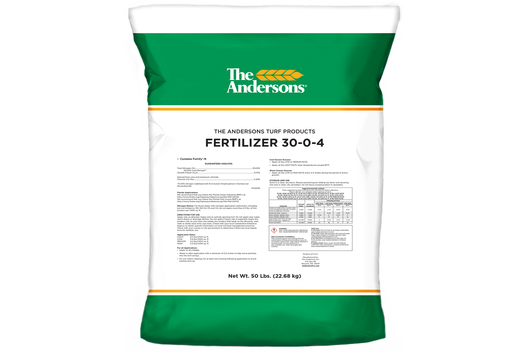 A traditional 50-pound bag of 22-0-4 fertilizer contains about 20 pounds (or 40%) of...